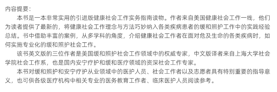 缓和照护——健康社会工作实务指南